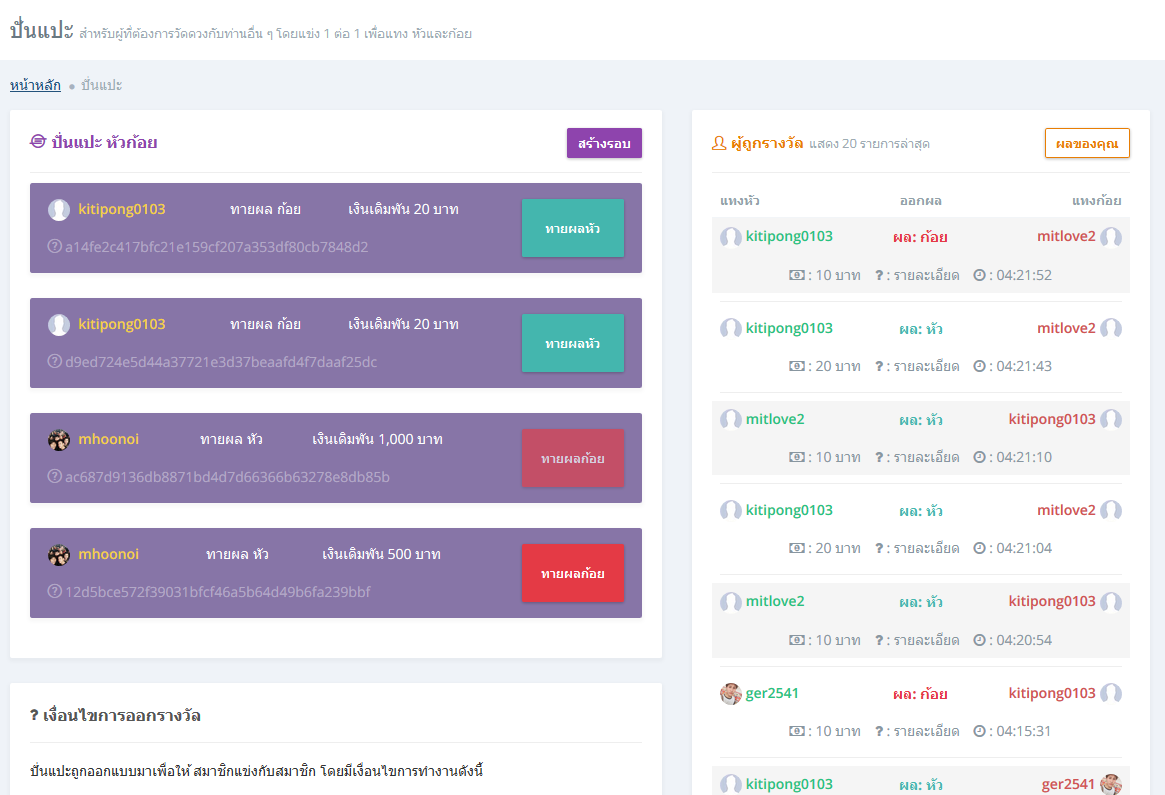 ความสนุกของระบบนี้คือ เป็นระบบวางเดิมพันระหว่าง 2 สมาชิก หากฝ่ายไหนชนะ จะได้รางวัลเดิมพันไปเลย