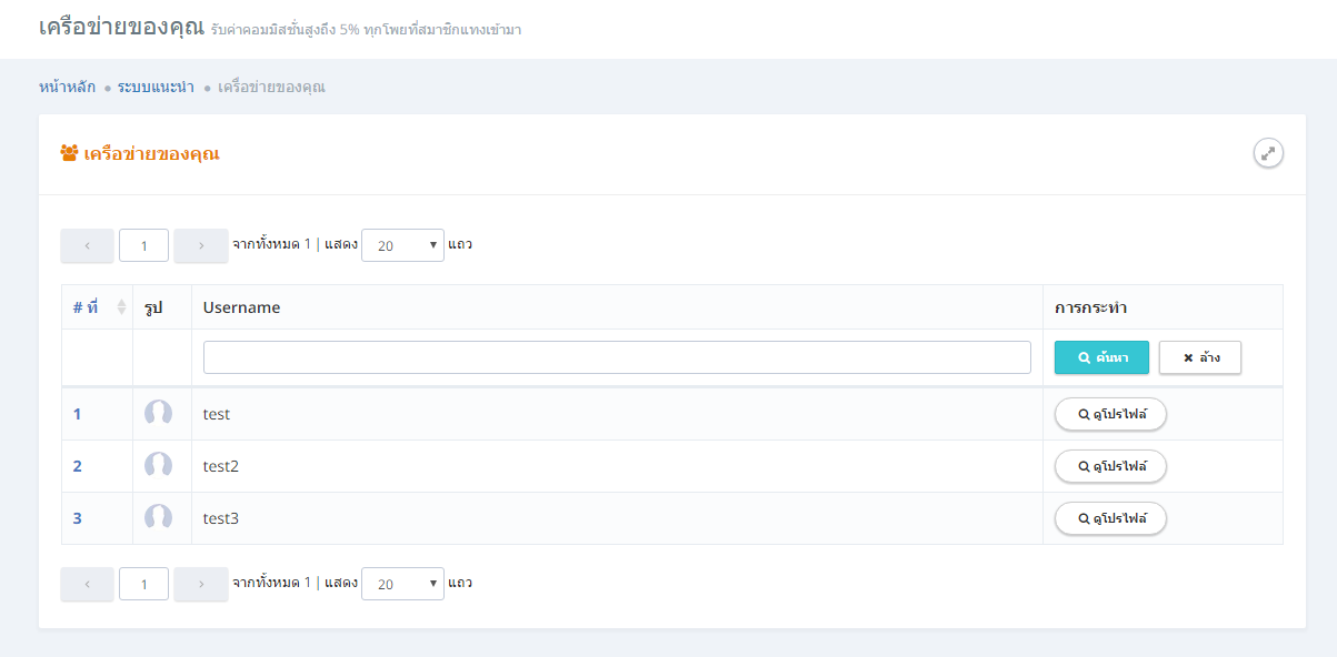 หากคุณต้องการดูเครือข่ายของคุณคลิกที่เครือข่ายของคุณ จะแสดงรายชื่อสมาชิกที่เป็นเครือข่ายของคุณ