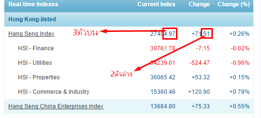 ผลหวยหุ้นต่างประเทศ หุ้นฮ่องกง ฮั่งเส็ง รอบเช้า - บ่าย