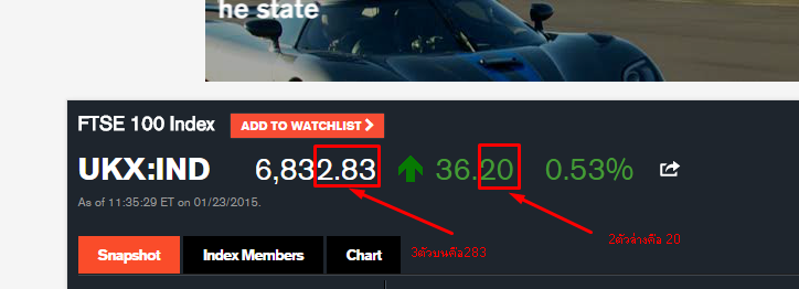 ใช้ผลการปิดตลาดของหุ้นลอนดอน ชื่อหุ้น FTSE 100 index